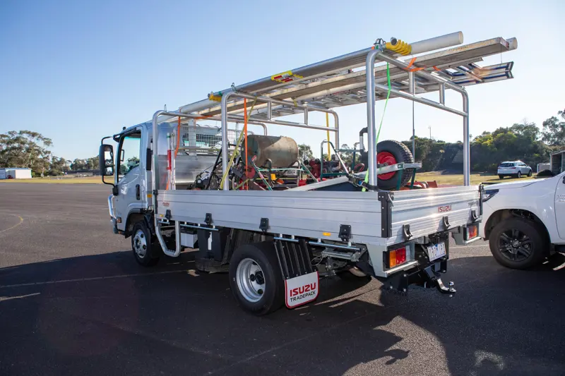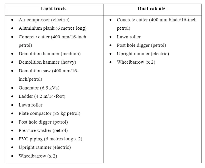 The dual-cab ute has a 470 kg payload. When attempting to load the same equipment in the tray, it could fit and legally carry 6 separate items, with some items needing to be left off due to the ute’s tray length.